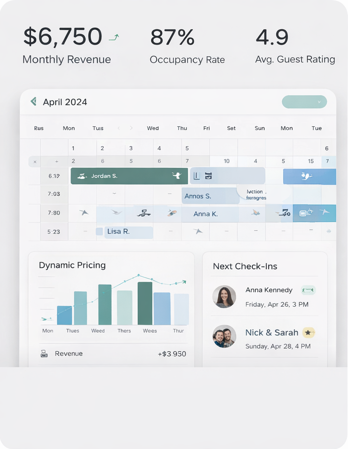 From dynamic pricing and AI-powered communication to hands-on local operations, every detail is designed to increase occupancy, optimize revenue, and ensure seamless stays.